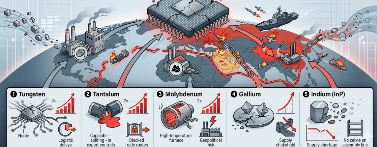 디지타임스에 따르면, 반도체 장비의 고온 부품에 쓰이는 텅스텐·탄탈륨·몰리브덴 3종은 최근 두 달 사이 가격이 2배 이상 올랐으며 일부 특수 소재는 전쟁 이전 대비 3배를 넘어섰다. 문제는 이들 소재가 국내 생산이 전무하거나 극히 미미해 100% 수입에 의존한다는 점이다.