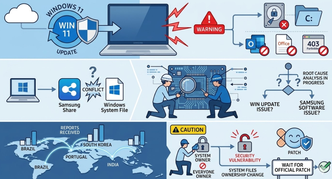 국내 B2B 시장에서 갤럭시북 시리즈의 기업 보급률이 꾸준히 높아지는 상황을 감안하면, 이번 오류가 기업 업무 환경에 미친 영향은 가정용 이용자보다 훨씬 광범위했을 수 있다. 한국을 포함한 4개국이 집중 피해 지역으로 지목된 사실도 국내 기업 IT 담당자들이 즉각 점검에 나서야 할 근거가 된다.