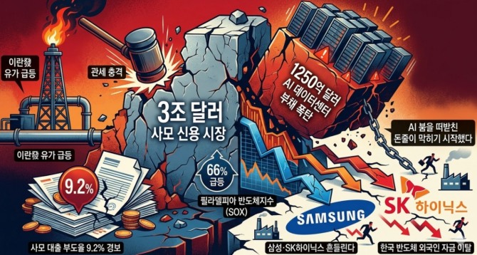1250억 달러 데이터센터 부채 폭탄 + 이란發 유가 급등 + 관세 충격 = 3조 달러 사모 신용 복합 경색