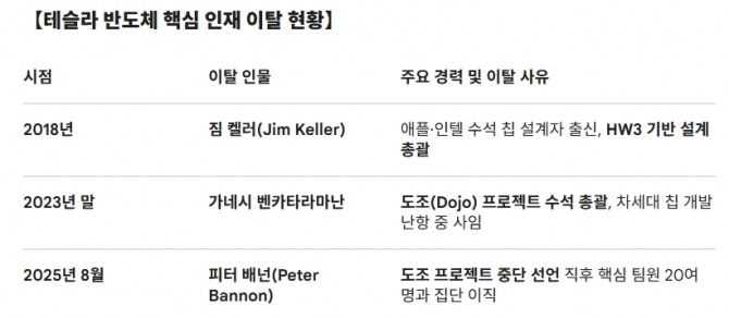 설계 핵심 인력 줄줄이 이탈한 테슬라, 수율 확보·클린룸 운용 경험 '제로'