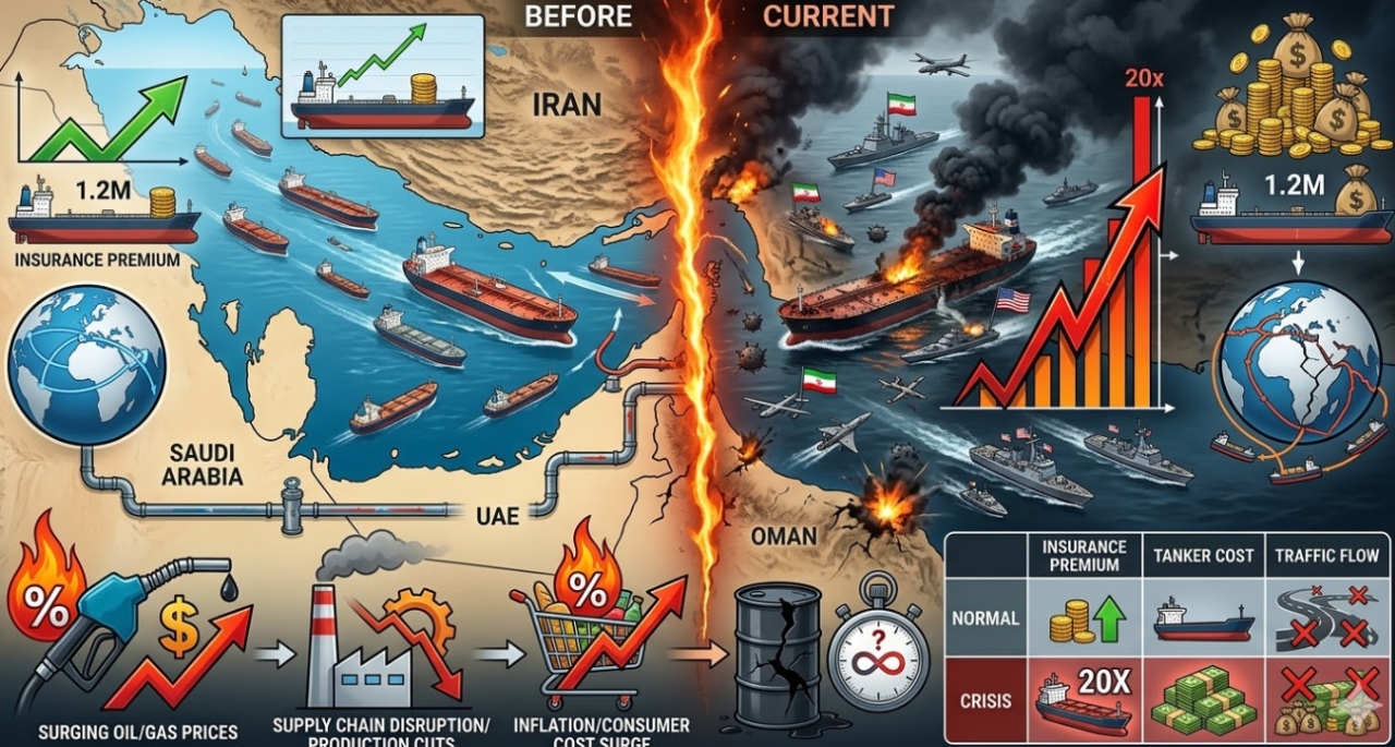 블룸버그는 18일(현지시각) 호르무즈 해협의 전쟁 위험 보험료가 전쟁 전 대비 최대 20배 수준으로 치솟았다고 보도했다.