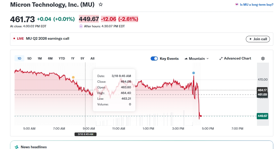 그럼에도 마이크론의 주가는 시간외거래에서 소폭 상승에 그치고 있다.