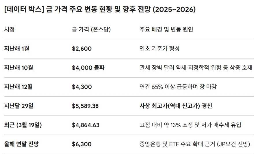 온스당 5,589달러 사상 최고가 대비 13% 조정…월가·투자은행, 낙관론 거두지 않는 이유