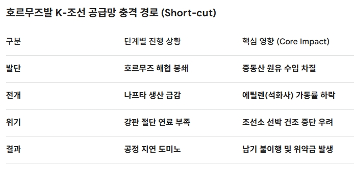 호르무즈 봉쇄가 국내 화학·조선을 강타하는 경로