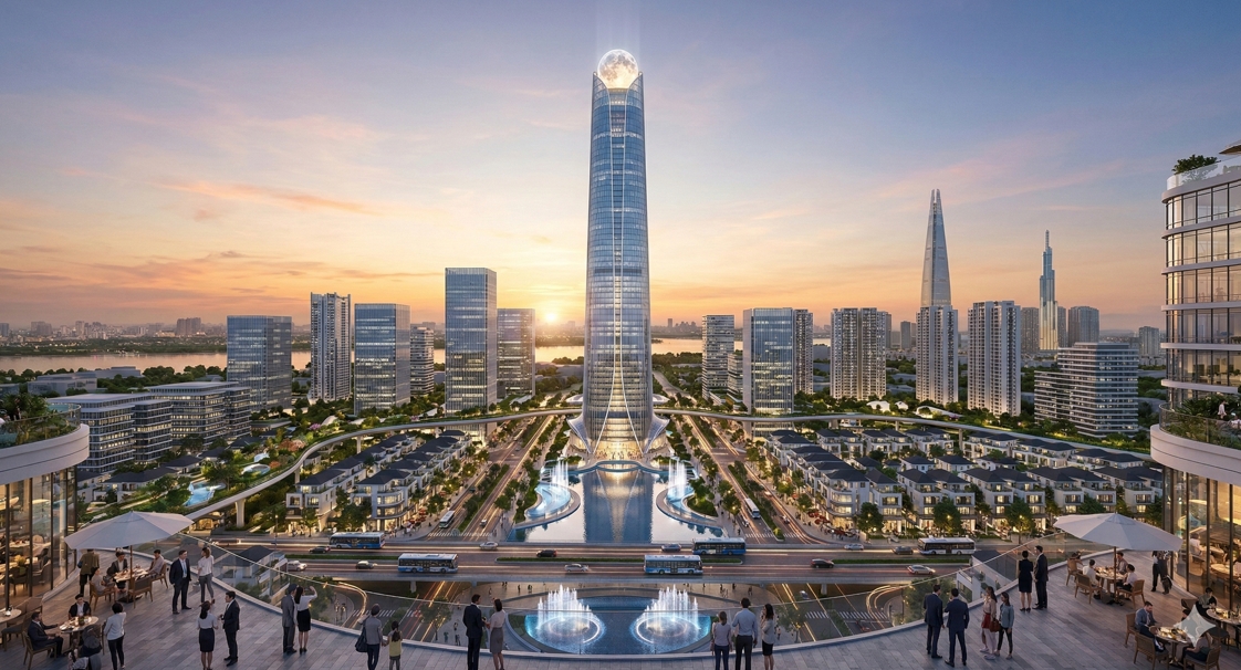 약 13만 3000㎡ 부지에 들어서는 이 타워는 단순한 오피스 빌딩이 아니다. 미국 설계사 SOM(Skidmore, Owings & Merrill)의 설계를 통해 현대적 미학과 베트남 전통을 융합했다.