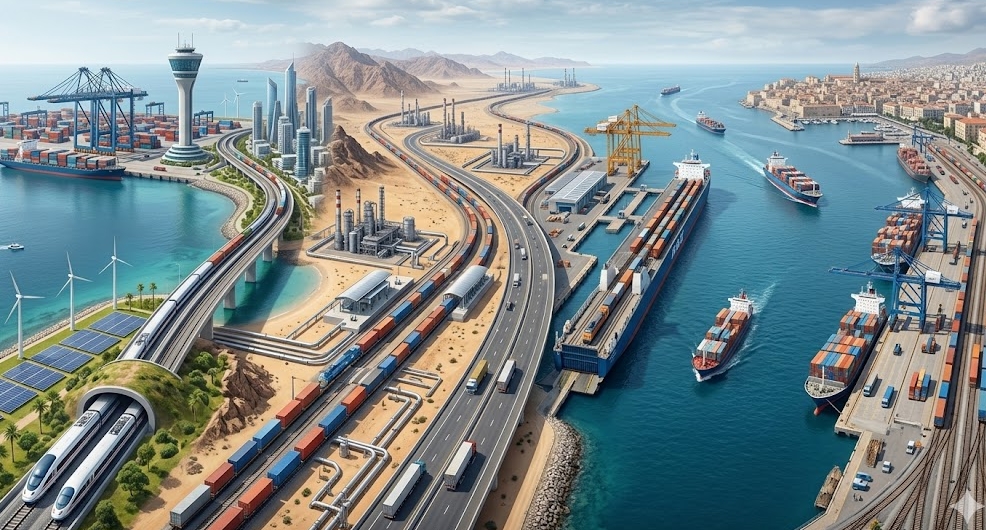 IMEC는 인도 서해안 문드라(Mundra) 항구에서 아라비아해를 건너 UAE 제벨알리(Jebel Ali) 항구에 닿는 동부 해상 구간과 아라비아반도에서 사우디아라비아·요르단·이스라엘 하이파(Haifa) 항구를 철도로 가로질러 그리스까지 잇는 북부 구간으로 이뤄진다. 완전 가동 시 기존 수에즈 운하 해상 경로 대비 운송 시간이 약 40% 줄고, 전체 물류 비용도 30% 낮아질 것으로 분석된다.