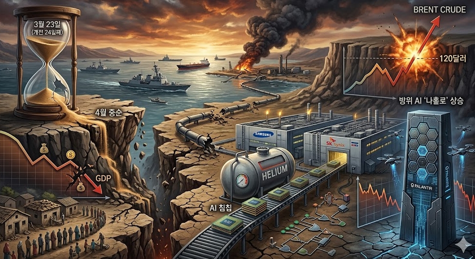 이미지 확대보기미국·이란 전쟁이 3월 23일 기준 개전 24일째를 맞았다. 블룸버그·모닝스타·채텀하우스 등의 분석을 종합하면, 전쟁이 '4월 중순'이라는 임계점을 넘기느냐에 따라 스태그플레이션·신흥국 외환위기·반도체 공급망 훼손이 동시에 터지는 복합 위기로 번질 수 있다는 경고가 잇따른다.