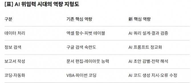 이력서에 '엑셀 능숙'을 적는 시대가 저물고 있다. 앞으로의 경쟁은 '누가 더 빨리 클릭하느냐'가 아니라, '누가 AI를 더 정확하게 부리고 더 날카롭게 의심하느냐'에서 판가름 난다.
