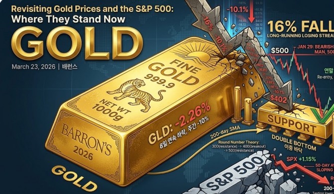 이미지 확대보기배런스는 지난 23일(현지시각) 금 가격의 고점 이탈과 S&P 500 지수의 추세 붕괴를 집중 분석했다. 앞서 이달 초 제기된 주식이나 코인 같은 자산 가격 차트에서 나타나는 대표적인 하락 반전 신호인 '이중 천장(Double Top)' 형성과 증시 약세 신호가 현실화하는 국면에서 핵심 지지선과 투자 전략을 짚어본다.