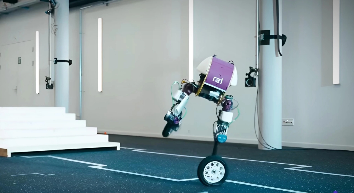 둘째는 '완전 대칭 관절'이다. 무릎이 앞으로도, 뒤로도 모두 굽혀진다. RAI 연구소는 "무릎을 앞뒤 어느 방향으로도 구부릴 수 있어 장애물 회피와 방향 전환에 활용된다"고 밝혔다. 로봇의 바퀴는 장애물을 오를 때 발의 역할도 겸해 계단을 한 칸씩 밟아 오른 뒤 경사로에서는 다시 바퀴 주행으로 전환하며, 역방향으로 계단을 내려올 때도 안정적인 균형을 유지한다.