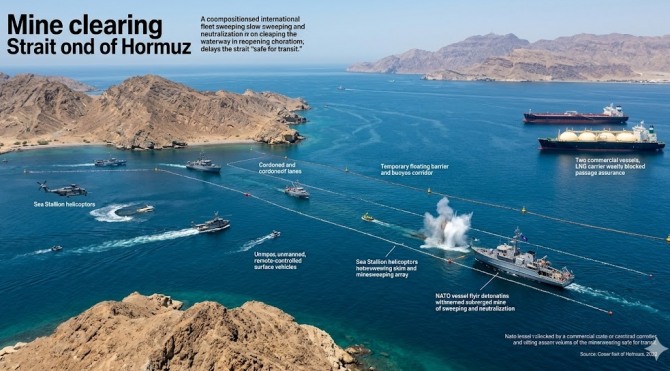 이미지 확대보기워싱턴포스트(WP)는 지난 27일(현지시간) 전직 영국 해군 장교 알렉산더 울리의 기고를 통해 "트럼프 대통령이 해협 재개방이라는 정치적 승리를 거두더라도, 기뢰 제거(소해) 작업에만 수개월에서 수년이 걸릴 수 있어 실질적인 통항 안전 확보는 별개의 문제"라고 보도했다.