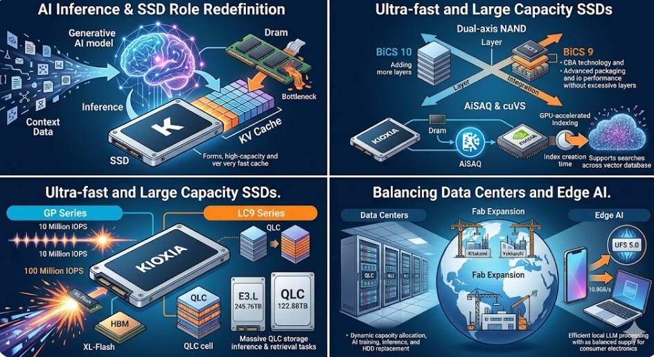 이미지 확대보기그 이유는 생성형 인공지능(AI)의 무게중심이 거대모델 ‘학습’에서 실시간 ‘추론’으로 급격히 이동하며, 저장장치인 SSD(솔리드 스테이트 드라이브)의 존재 이유가 근본적으로 재정의되고 있기 때문이다. 키옥시아는 지난 30일(현지시간) 디지타임스(Digitimes)와의 인터뷰를 통해 2027년 증설 물량이 시장을 흔들기는커녕 폭증하는 AI 수요를 감당하기에도 벅찰 것이라는 낙관적인 전망을 내놨다.
