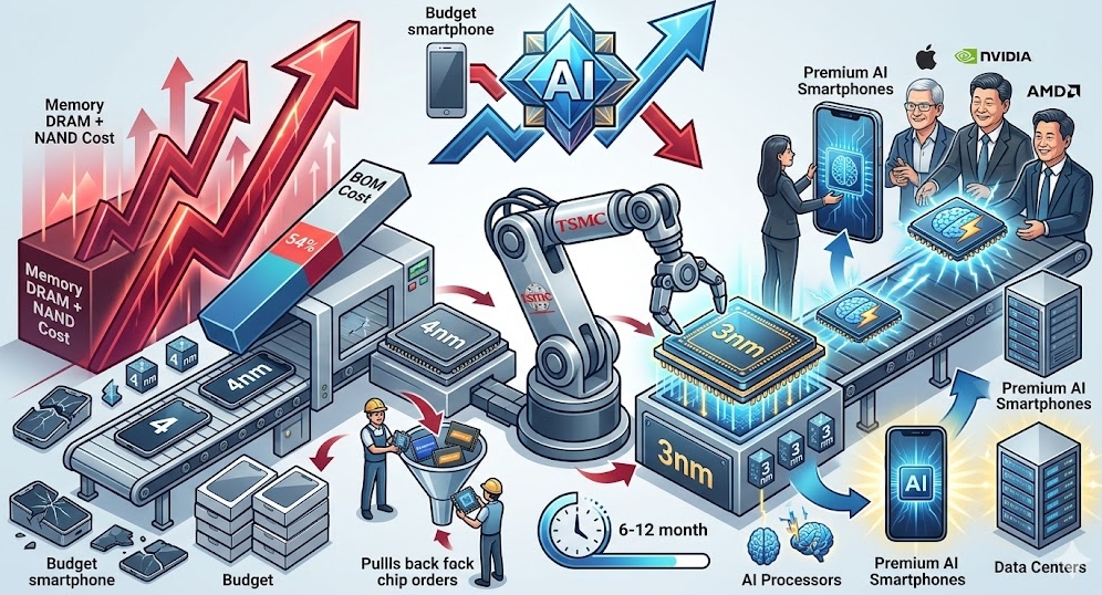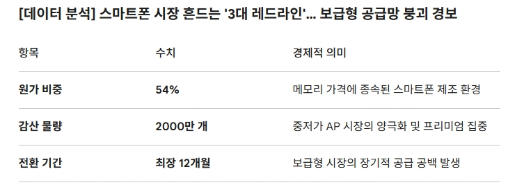 이번 사태를 관통하는 핵심 지표는 반도체 산업의 구조적 변화를 극명하게 보여준다. 스마트폰 시장의 공급 구조가 뿌리째 흔들리고 있다.