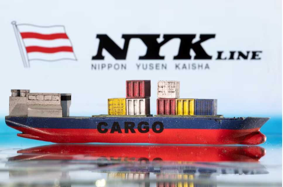 2022년 3월 3일 닛폰유센(NYK) 로고 앞에 화물선 보트 모형이 있다. 사진=로이터