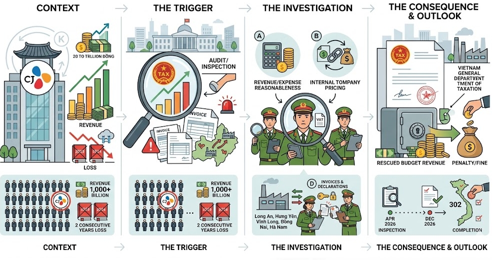 CJ푸드 베트남도 이 명단에 오르며 당국의 정밀 검토를 받게 됐다. 세무국은 CJ푸드 베트남이 상당한 규모의 매출을 올리면서도 세무 신고상 적자가 반복되는 점을 ‘비정상적’이라고 보고 있다. 당국 관계자는 “상식적으로 장기간 손실이 나면 사업을 축소해야 하는데, CJ푸드는 오히려 공장을 늘리고 자본금을 키우는 등 투자를 확대했다”며 “신고된 손실과 실제 경영 활동 사이의 괴리를 집중 조사할 것”이라고 밝혔다.