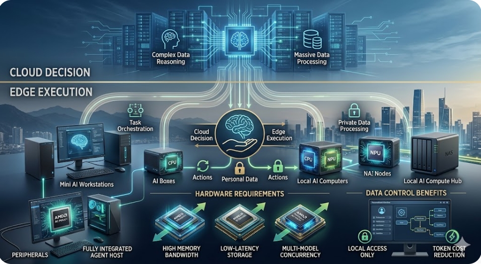 인공지능(AI)이 단순한 대화를 넘어 업무를 스스로 수행하는 '실행형 에이전트'로 진화하면서, 이를 뒷받침할 새로운 하드웨어 카테고리인 '에이전트 컴퓨터'가 개인용 컴퓨팅의 차세대 핵심으로 부상하고 있다. 거대 서버에 의존하던 기존 방식에서 벗어나 기기 자체에서 고성능 AI를 구동하는 '에지(Edge) 컴퓨팅'으로의 대전환이 시작됐다.
