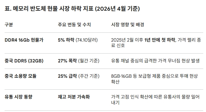이미지 확대보기현물 시장의 경고음, 중국발 DDR4·DDR5 동반 하락