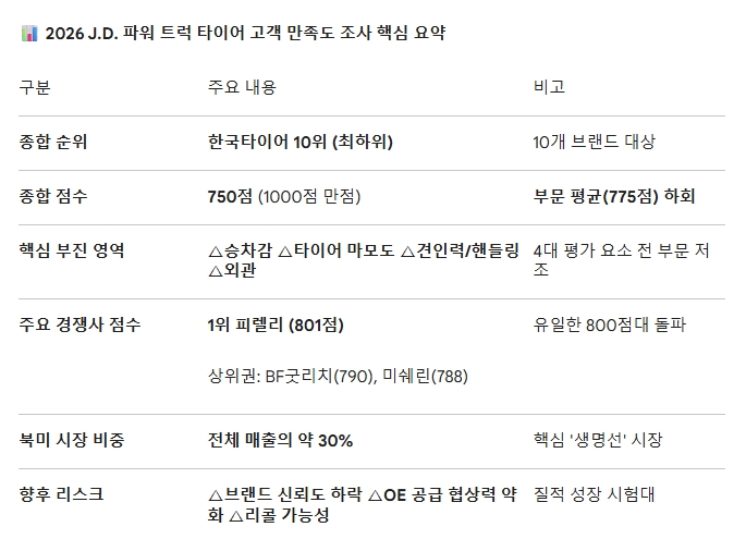 2026 J.D. 파워 트럭 타이어 고객 만족도 조사 핵심 요약. 도표=글로벌이코노믹이미지 확대보기