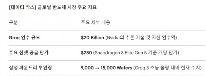 삼성전자 파운드리 사업부는 지난 2023년 8월, 그록을 미국 테일러 신설 공장의 첫 고객사로 유치하며 4나노(SF4X) 공정 수주에 성공했다. 이는 과거 엔비디아 물량을 TSMC에 내준 이후 거둔 핵심 성과였다. 하지만 지난해 12월 엔비디아가 약 200억 달러(약 29조 6100억 원)를 투입해 그록을 인수하며 판도가 뒤집혔다.