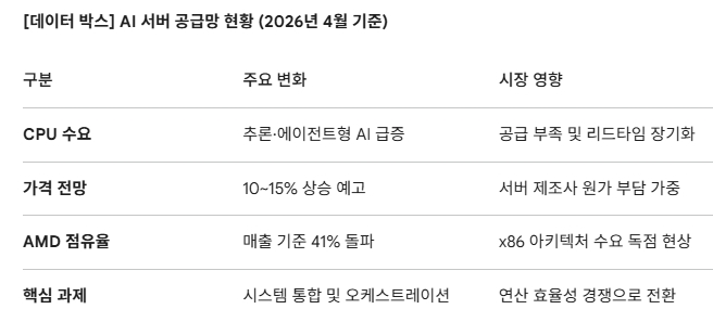 추론·에이전트 AI 워크로드 급증이 도화선… AMD 점유율 41% 돌파하며 시장 재편