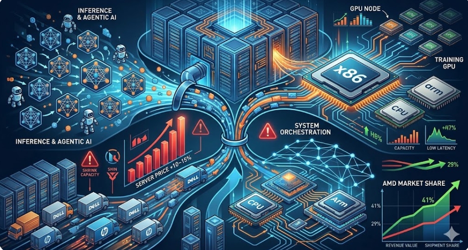 이러한 공급난 속에서 반사이익을 얻는 기업은 AMD다. 머큐리 리서치(Mercury Research)에 따르면, 2025년 4분기 기준 AMD의 서버 CPU 매출 점유율은 41%에 육박했다. 저지연성, 소프트웨어 호환성, 고대역폭 메모리 지원 등 x86 아키텍처의 강점이 AI 추론 환경에서 다시 조명받고 있다.