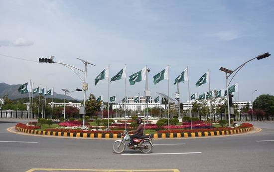 파키스탄이 미국과 이란을 초청해 2차 종전협상을 개최하기에 앞서, 대통령 관저 앞에 파키스탄 국기가 게양되었다. 사진=로이터