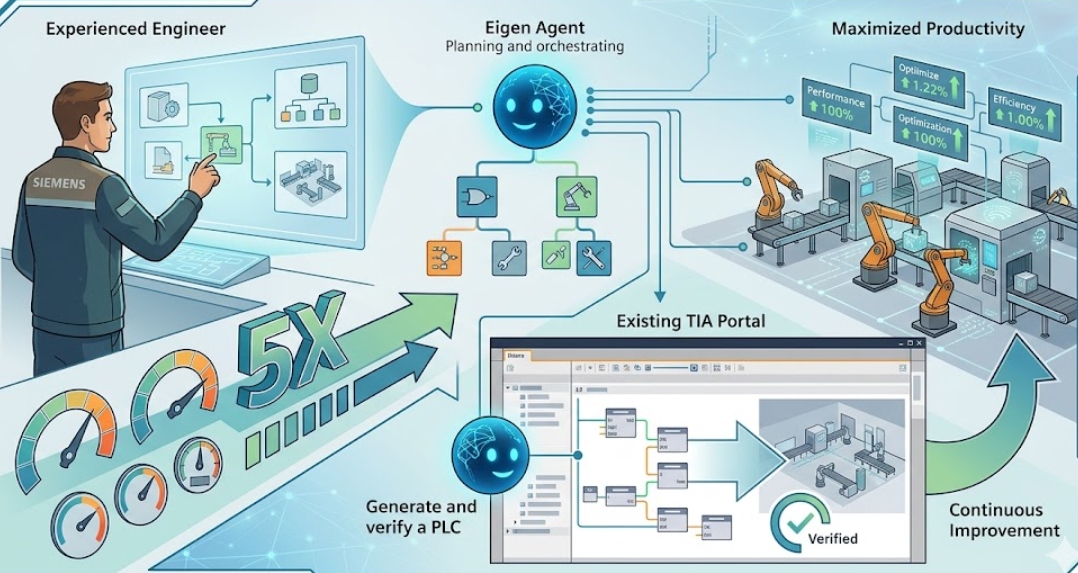 이번에 공개된 아이겐 에이전트는 지멘스의 통합 플랫폼 'TIA 포털'과 직접 연동된다. 기존 AI가 코딩 문법을 제안하는 보조 역할에 그쳤다면, 아이겐 에이전트는 제어 프로그램 생성부터 설비 설정, 논리 검증까지 전 과정을 도맡는다. 전 세계 100여 개 기업이 파일럿 테스트를 마친 결과, 작업 시간은 기존 대비 2~5배 단축됐다.