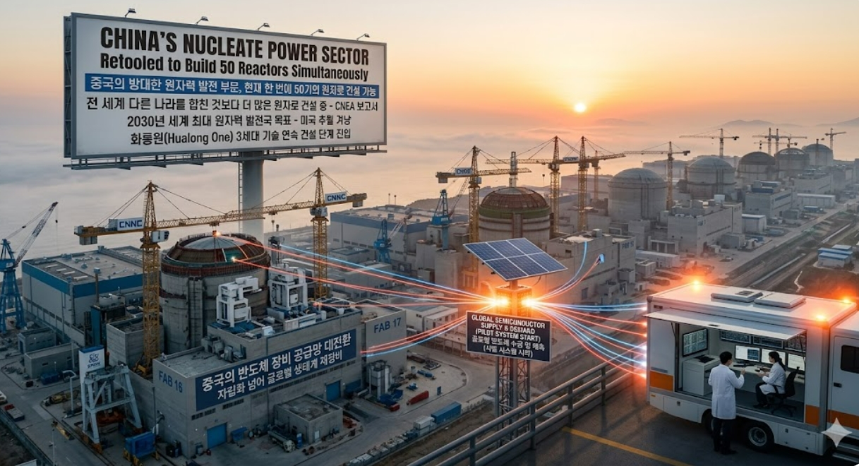 이미지 확대보기중국은 현재 전 세계에서 건설 중인 원자로 수의 절반 이상을 자국 내에서 소화하며, 설계부터 시공까지 전 과정을 아우르는 독자적인 공급망을 완성했다.