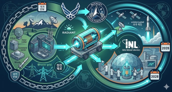 이미지 확대보기미 공군과 국방혁신단(DIU)은 22일(현지시간) 콜로라도주 버클리 우주군 기지에 도입할 초소형 원자로 개발 업체로 '래디언트(Radiant)'를 최종 선정했다고 밝혔다. 이번 결정은 미군이 추진하는 '설치형 첨단 원자력 발전(ANPI)' 이니셔티브의 첫 실전 사례다. 래디언트가 개발한 초소형 원자로 '칼레이도스(Kaleidos)'는 오는 2028년 버클리 기지에 첫 납품될 예정이다. 이는 미군 시설에 상용 개발된 초소형 원자로가 배치되는 첫 사례로, 미국 국방 전략의 에너지 전환을 상징하는 중요한 이정표가 될 전망이다.