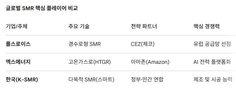글로벌 SMR 핵심 플레이어 비교. 도표=글로벌이코노믹
