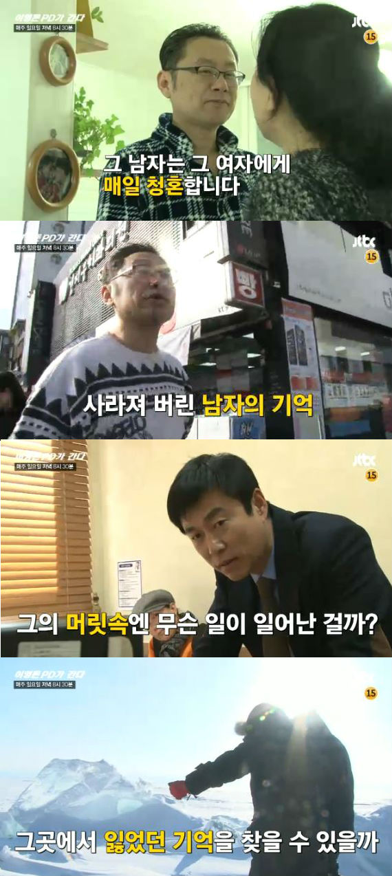 이미지 확대보기8일(일) 방송되는 JTBC '이영돈PD가 간다' 5회에서 이영돈PD는 매일을 빠짐없이 청혼하는 한 남자의 모습이 그려진다.