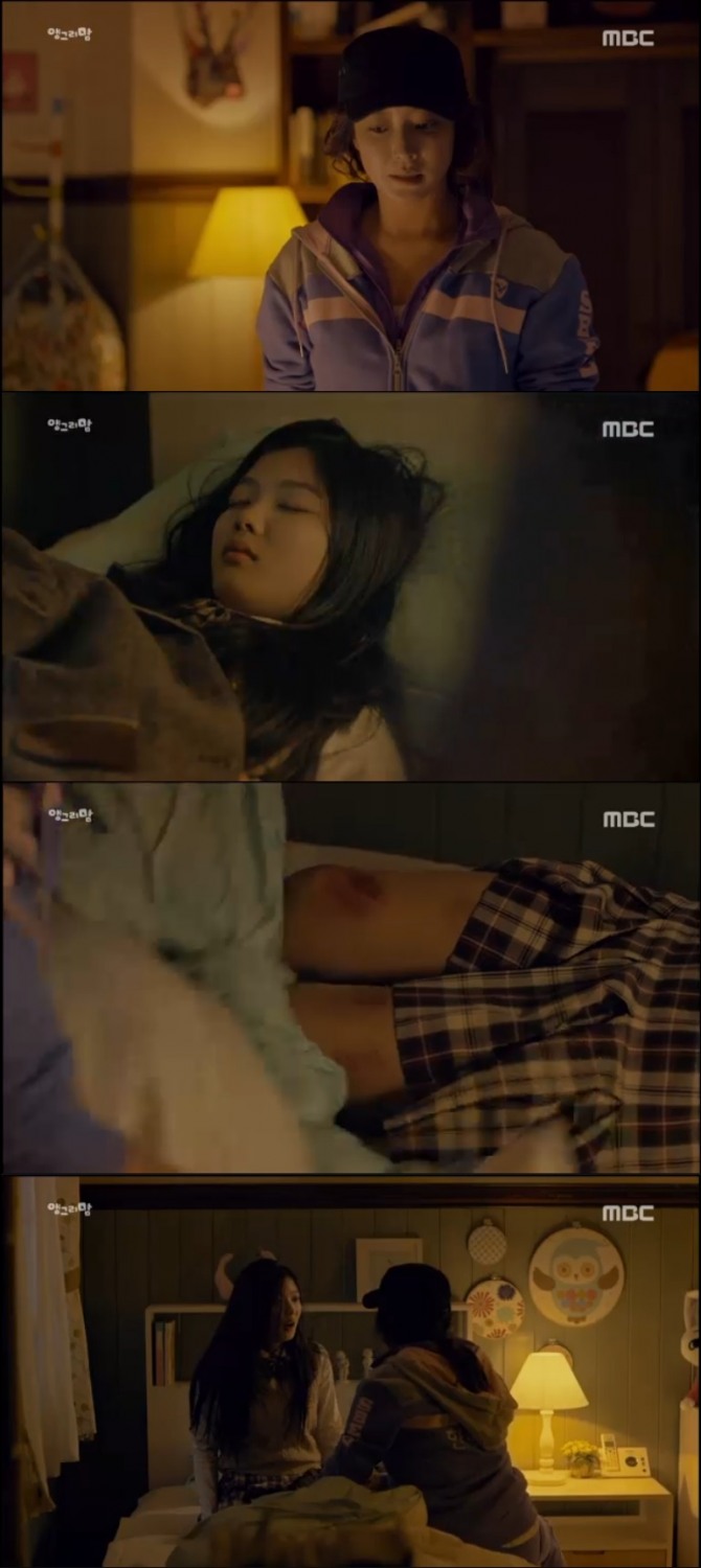 아란은 체육시간에 다쳤다면서 둘러댔지만 그런 일에 잔뼈가 굵은 강자가 그런 거짓말에 넘어갈 일 없었다. 강자는 아란에게 맞은 것과 다친것도 구분하지 못한다고 하며 다시 한번 채근했지만 아란은 끝까지 마음을 닫고 강자의 마음을 더욱 답답하게 만들었다.