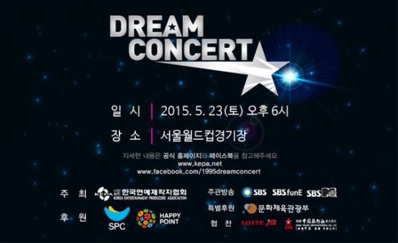 18일 한국연예제작자협회(회장 김영진)에 따르면 오는 5월 23일 서울 상암동 서울월드컵경기장에서 ‘사랑한다 대한민국 2015 드림콘서트’가 열린다.