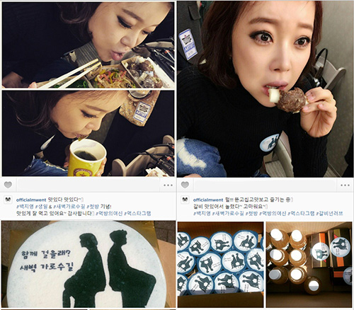 공개된 사진 속 백지영은 머리에 헤어롤을 단 채 팬들이 보내준 도시락을 먹고 있다. 특히 사진 중 도시락 앞에 부착된 스티커를 가슴에 붙이고 갈비를 손에 든 채 놀란 표정을 짓고 있다. 사진과 함께 개제된 글에는 ‘갈비 맛있어서 놀랬다. 고마워요.’이라고 적혀있어 웃음을 자아낸다.