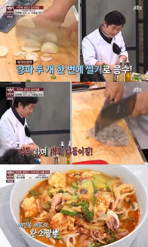 또한 이연복은 침착하게 양파, 고추 여러 개를 동시에 채써는가 하면 중식용 칼로 순식간에 마늘을 다지기와 새우를 다져 출연진들의 환호를 자아냈다.