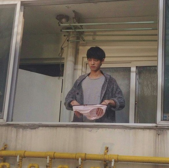 공개된 사진 속에는 무표정으로 서서 어딘가를 응시하는 정준영의 모습이 담겨 있었다. 특히 정준영이 손에 들고 있는 분홍색 팬티가 눈길을 끈다.