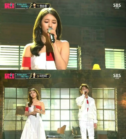 이날 방송에서 정승환은 JYP엔터테인먼트 소속 미쓰에이 수지와 함께 박진영의 곡 ‘대낮에 한 이별’을 선곡했다.