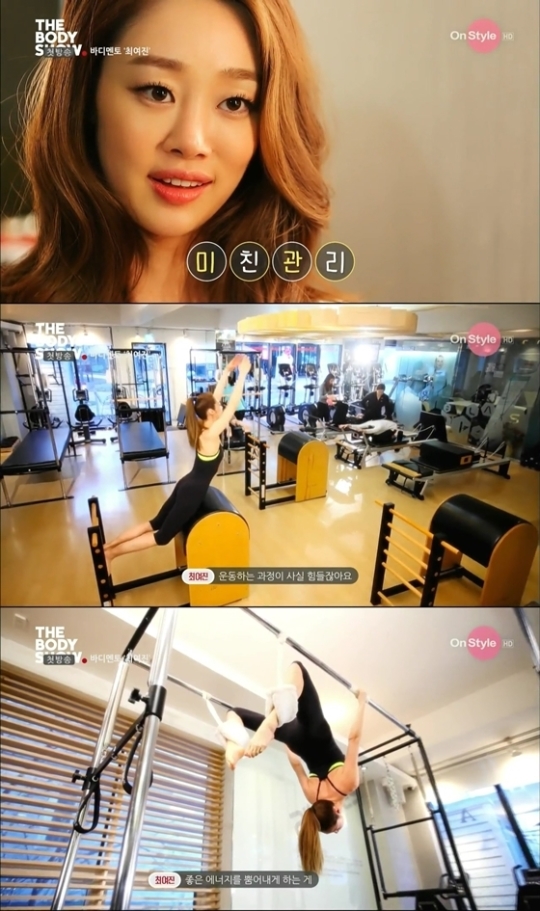 최여진은 "황금비율을 유지하려면 운동을 통한 '미친 관리'를 하는 것 밖에 답이 없다"며 고난이도의 운동법을 공개했다.