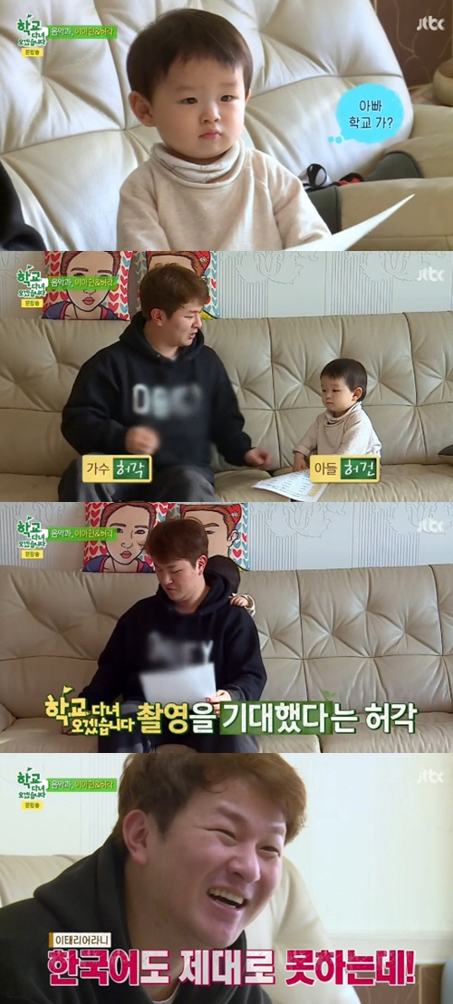 이날 허각은 등교하기 전 자신의 집에서 교과서를 받았다. 학교에 가게 된 허각은 들뜬 마음으로 아들 허건 군에게 “아빠 학교 간다. 어떡하냐”라고 말해 웃음을 자아냈다.