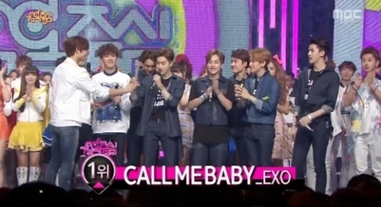 이날 방송에서 1위는 엑소 정규 2집 앨범인 ‘엑소더스’의 타이틀곡 ‘콜 미 베이비’가 차지했다.