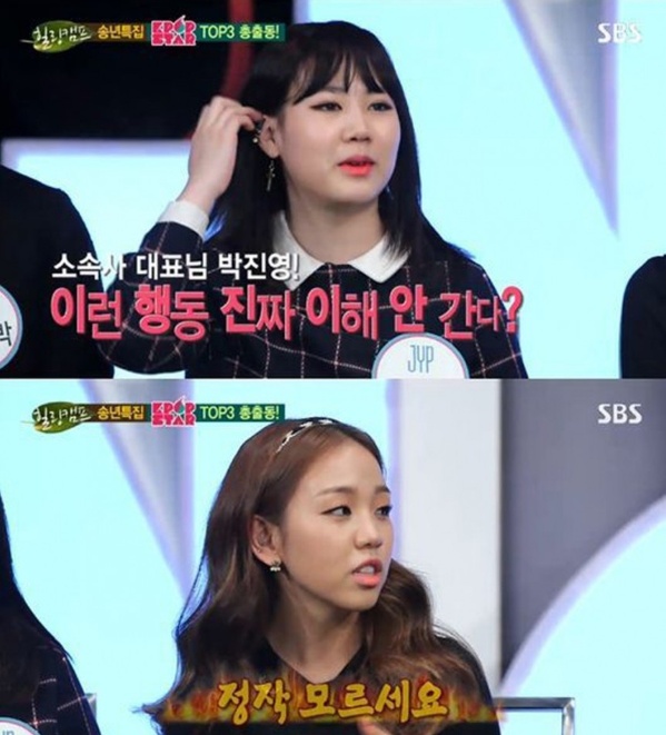 박지민은 소속사 대표 박진영에 대해 “박진영 프로듀서는 자신만의 세상에 갇혀 있다”며 “늘 공기반 소리반 말씀하시지만 정작 본인은 잘 모르시는 거 같다” 말해 폭소케 했다.