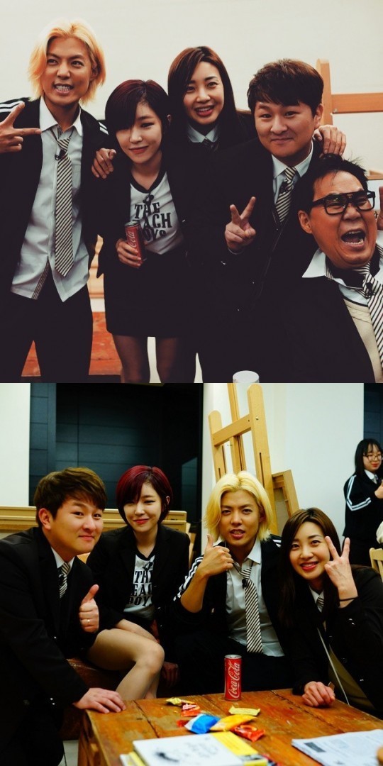 또 다른 사진에는 조영남이 빠져 있어 눈길을 끈다. 이아현, 가인, 허각, 강남은 미소를 지으며 브이 자를 그리거나 엄지손가락을 치켜올리는 등 화기애애한 분위기를 전하고 있다.