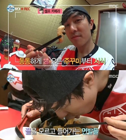 홀로 밥먹기의 달인 김동완은 짬뽕을 먹기 전 카메라부터 설치했다. 셀프카메라에 홍합을 자랑하던 김동완은 본격 짬뽕 먹기를 시작했다.