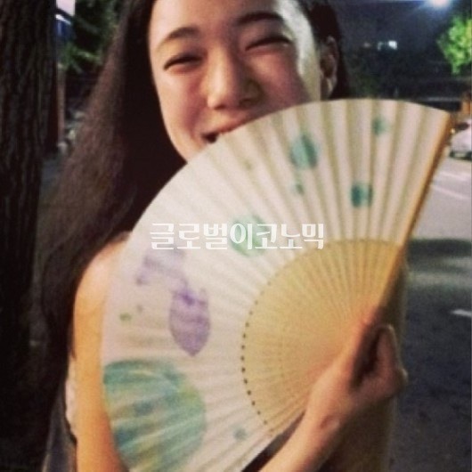 공개된 사진 속 손수현은 길거리에서 지인으로부터 선물받은 듯한 부채를 들고 카메라를 응시하며 미소 짓고 있어 보는 이들의 이목을 사로잡았다.
