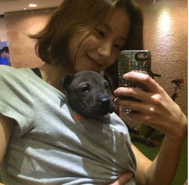 공개된 사진 속 박수진은 작은 강아지를 티셔츠 안에 넣고 미소 지으며 카메라를 응시하고 있다. 특히 박수진의 사랑스럽고 행복해보이는 표정과 졸린듯 금방 잠이 쏟아질 것 같은 강아지의 편안한 표정이 훈훈한 분위기를 자아낸다.