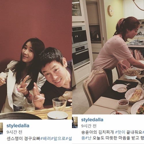 배우 윤현숙은 과거 자신의 SNS에 “센스쟁이 경구 오빠 배려, 앞으로, 설경구, 저녁”, “우리의 수다는 끝이 없다”, “송윤아의 김치찌개, 맛이 끝내줘요, 행복, 감동, 고마움, 난 오늘도 따뜻한 마음을 받고 행복에 겨워”, “동생이지만 가끔 엄마 같은 마음으로 건강을 챙겨주는 윤아야 정말 행복하다”는 글과 함께 사진 여러 장을 업로드했다.