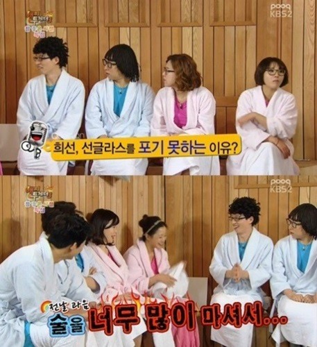 당황한 김희선은 “사실 전날 술을 너무 많이 먹어서 선글라스를 쓸 수밖에 없었다”고 말해 폭소케했다.