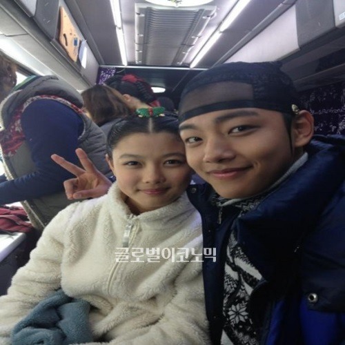 공개된 사진에는 MBC TV '해를 품은 달'에 함께 출연 중인 여진구가 김유정의 어깨에 팔을 올린 채 브이를 그리고 있어 보는 이들의 이목을 사로잡고 있다.