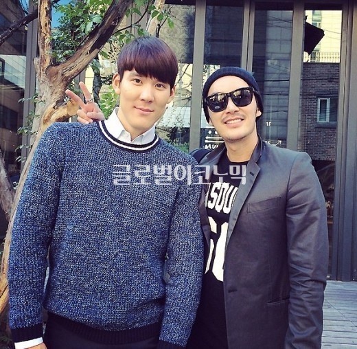 공개된 사진 속 그와 박태환은 다정하게 서서 포즈를 취하고 있다.