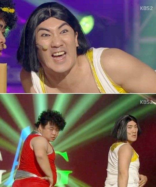 이에 송영길이 “너 정도 생겼으면 덜 착해도 돼”라고 받아치자 ‘니글니글’이라는 배경음악이 울려 퍼졌고 두 사람의 느끼한 춤사위가 이어졌다. 이들의 민망한 춤을 본 관객들은 어이없다는 듯 웃음을 터뜨리거나 눈을 가리기 일쑤였다.